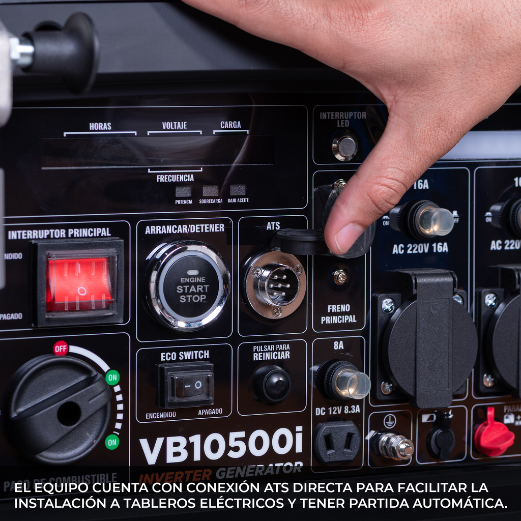 COMPATIBLE CON SISTEMA ATS: Este modelo cuenta con puerto para conexión ATS (Transferencia Automática de Energía), lo que le permite integrarse fácilmente a instalaciones eléctricas para encenderse automáticamente en caso de cortes de luz.